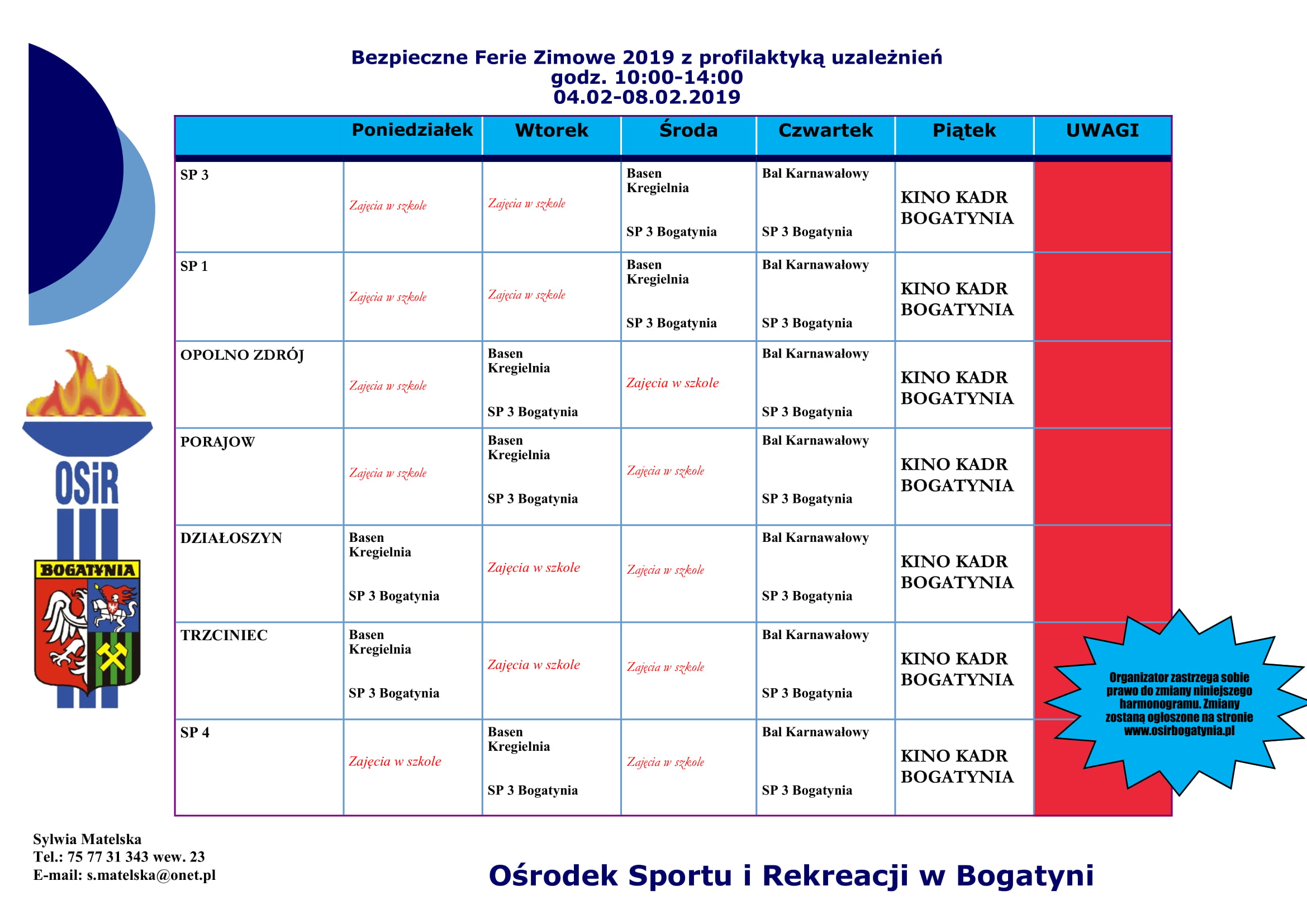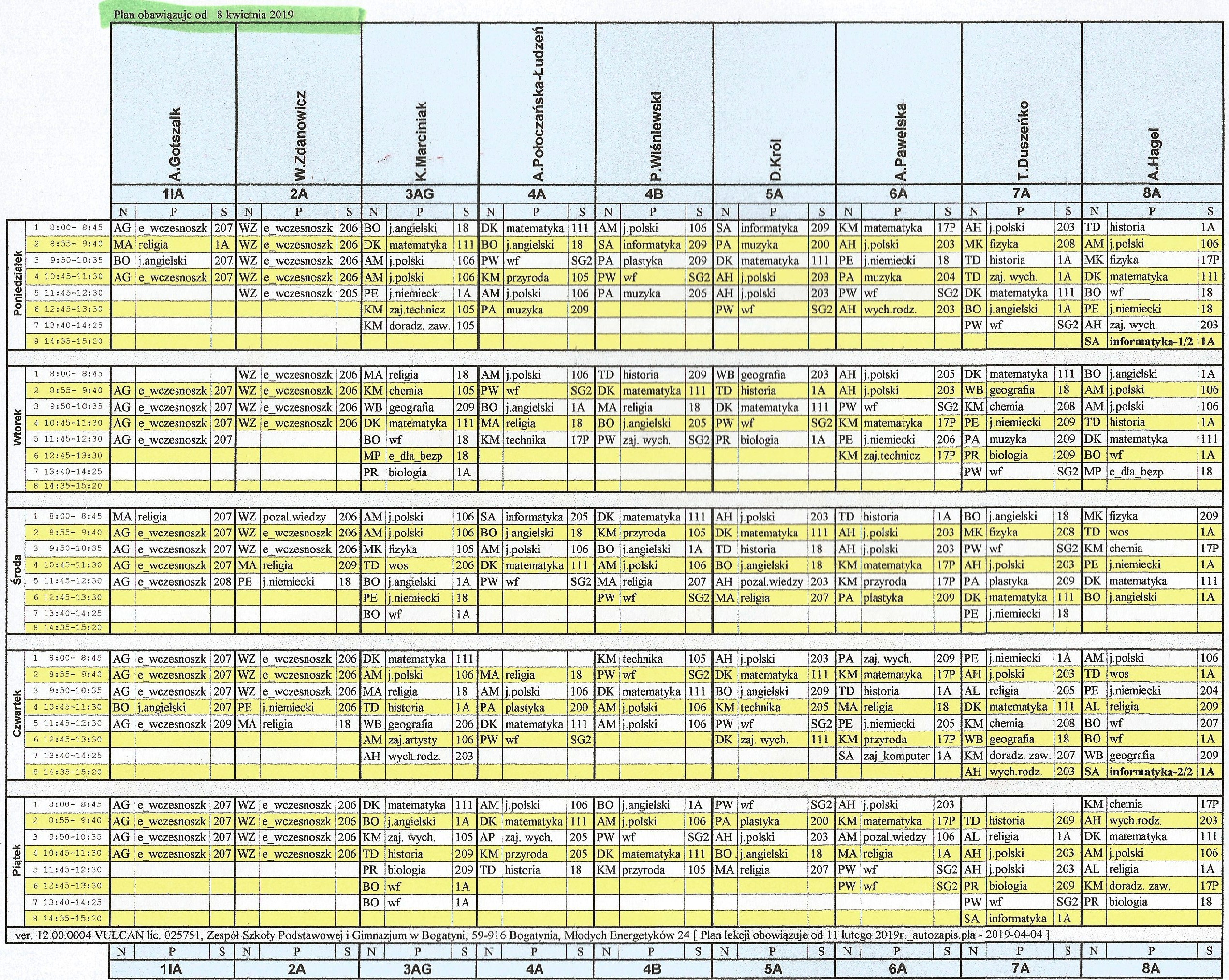 (na stałe jest w zakładce: AKTUALNOŚCI / Plan lekcji)