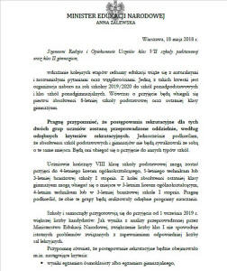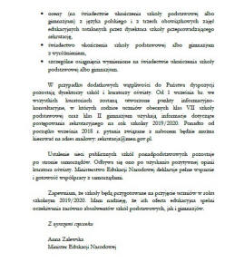 W związku z powyższym proszę Rodziców o zapoznawanie się na bieżąco z informacjami prasowymi i telewizyjnymi. W przypadku, gdy związki zawodowe i Rząd RP dojdą do porozumienia, zajęcia w szkole odbędą się zgodnie z planem.