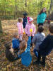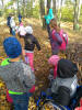 pobliskiego lasu. Poszukiwali tropów zwierząt żyjących w lesie, poznawali